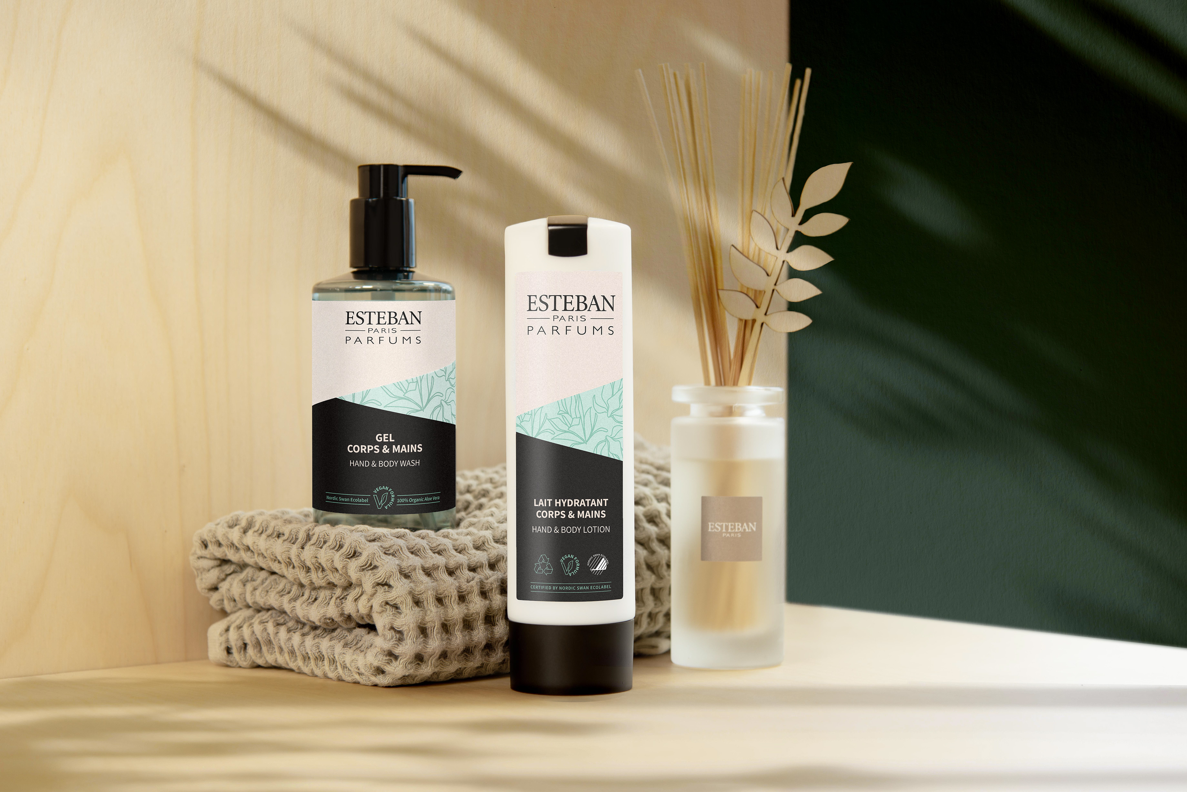 Gamme de produits cosmétiques hôteliers Estéban Paris Parfums pour ADA Cosmetics, partenaire cosmétique pour hôtels de haut standing. Photos : Judith Vibert-Guigue