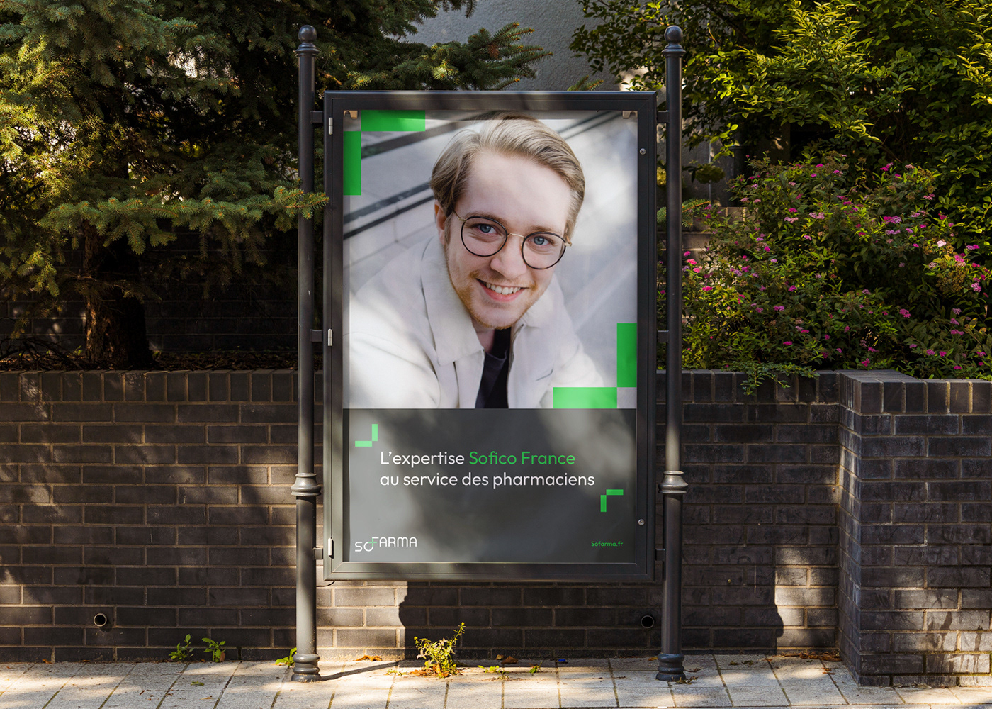 Filiale du groupe d'expertise comptable Sofico France dédiée aux officines. Le logotype se traduit par la fusion du nom Sofico et celui de la pharmacie. Client : Booster Digital pour Sofico France